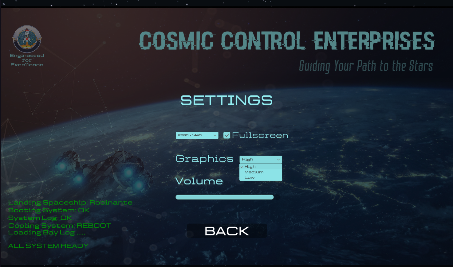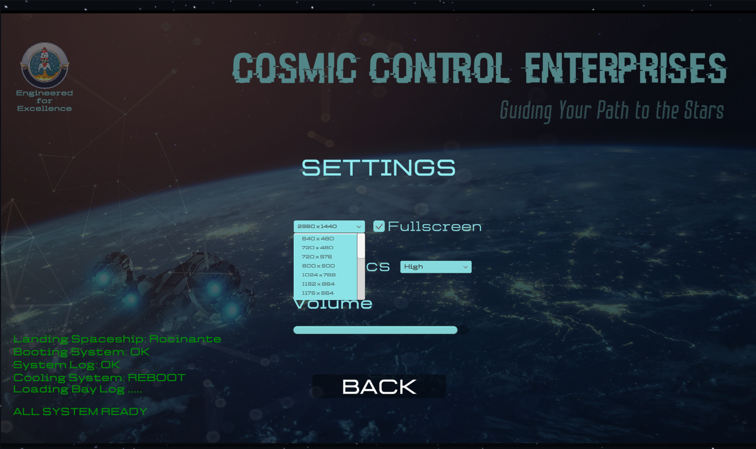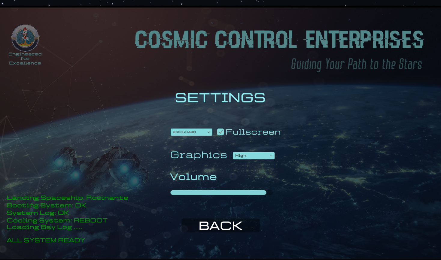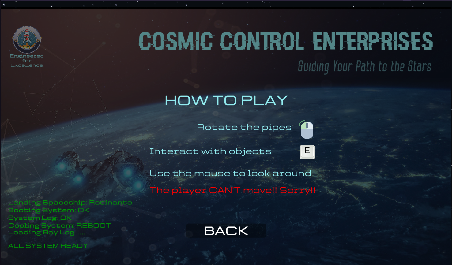 Cosmic Control Enterprises is a puzzle game set up on The Expanse (James S. A. Corey, 2011), one of the most well-known science fiction book series adapted into a successful TV show. I attempted to give the player the impression that they were in control of a crucial mission, starting the game inside the room I constructed using the assets pack provided by the university: save the Rocinante’s crew first and preserve humanity’s one remaining chance to explore alien worlds and settle habitable planets in the Milky Way and beyond.