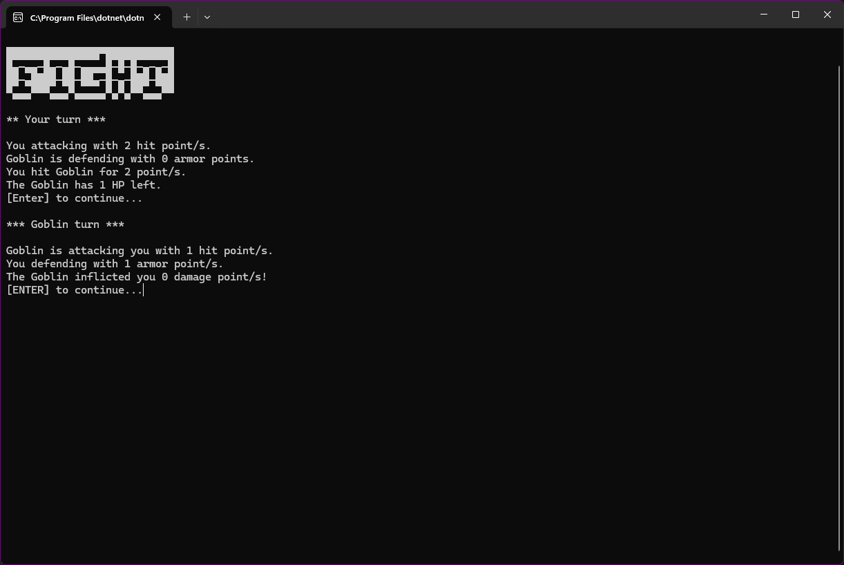 This project demonstrates my C# programming fundamentals, object-oriented design skills, and ability to create complete game systems using console applications. It showcases clean code practices and thoughtful game design without relying on external graphics or game engines.