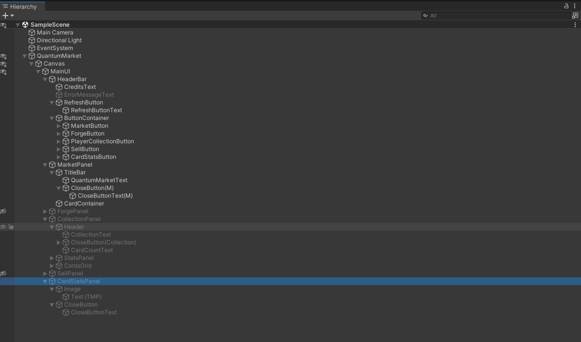 Developing The Quantum Market taught me valuable lessons about game architecture and the importance of planning data management from the start of development. The biggest insight came from separating the name generator from the configuration system - initially designed as one system, splitting them made the architecture clearer and more maintainable. One of the most significant challenges involved understanding designersβ needs, as I typically approach development from a programmerβs perspective. This project pushed me to create systems that non-programmers could easily use and modify, improving my ability to design user-facing tools. The card display challenge, though frustrating, taught me valuable lessons about Unityβs UI system and the importance of attention to detail in prefab configuration. This experience improved my debugging methodology and deepened my understanding of how Unityβs UI hierarchy interacts with ScriptableObjects. Despite its challenges, Iβm satisfied with what I achieved. The project successfully demonstrates the power of ScriptableObjects for creating maintainable, designer-friendly game systems. While currently a showcase of architecture patterns, I plan to expand it into a fully playable game incorporating the future improvements mentioned above.